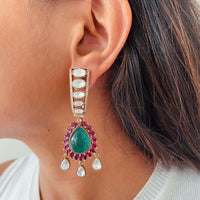 Zircon Studded Moissanite Drops, Emerald Doublet Open Choker Set (Necklace & Earrings)