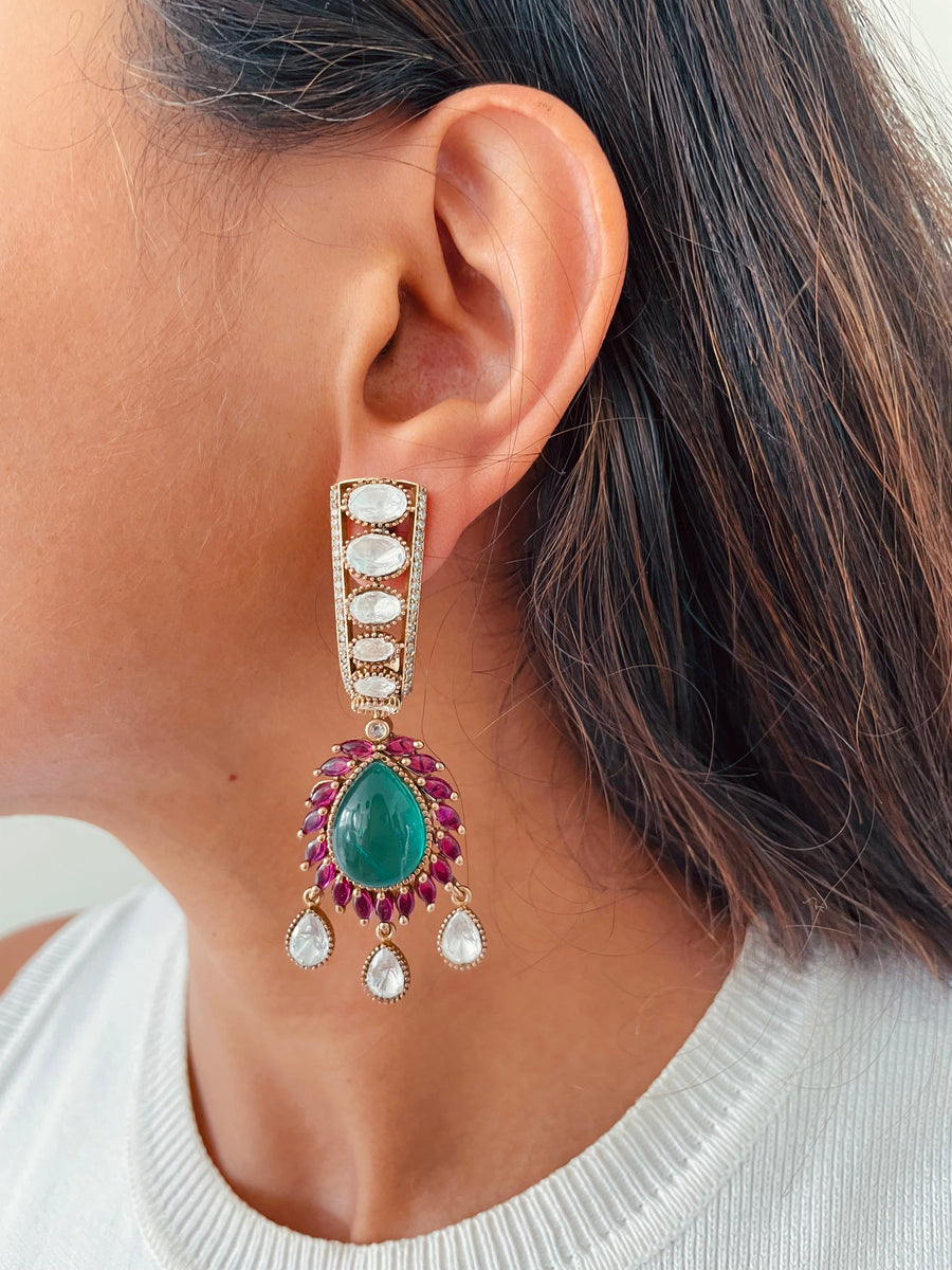 Crafted to look just like real jewellery, this set exudes richness with vivid emerald-like doublets, making it ideal for weddings, cocktail parties, and destination celebrations across the globe—from Dubai to London, Toronto to Sydney.