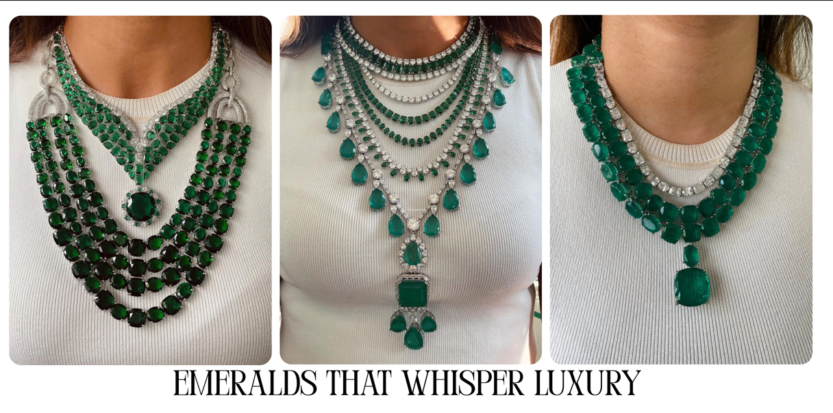 💚💎👑 Maharani Emerald Doublet & Diamond Choker& Zarfina Emerald Imperial Haar Necklace Set(2 Necklace & 2 Pairs of Earrings) Experience the epitome of emerald royalty with the Maharani Emerald Doublet...