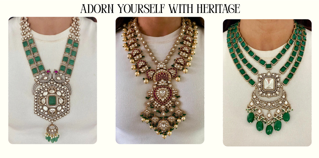 ❤️👑✨ Maharani Zarnoor Rubiyana Royal Court Empress Moissanite Polki Kundan& Tejaswini Ruby Zareen Darbar Sovereign Necklace Set(2 Necklace & 2 Pairs of Earrings) Experience the magnificence of true royal heritage...