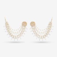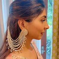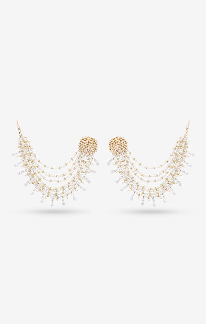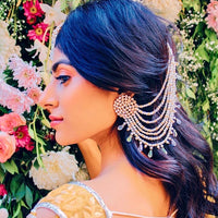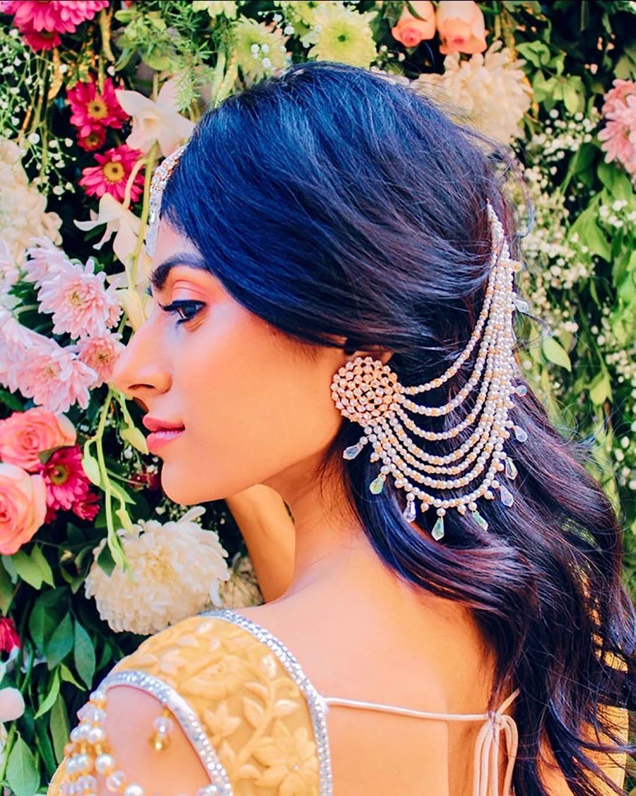 当灯光撞到灯时,我们的丽娜耳环将使您成为每个活动的明星。耳环上饰有施华洛世奇晶体,上面饰有多片珍珠,这些珍珠散布在头发中,使您具有独特的外观。